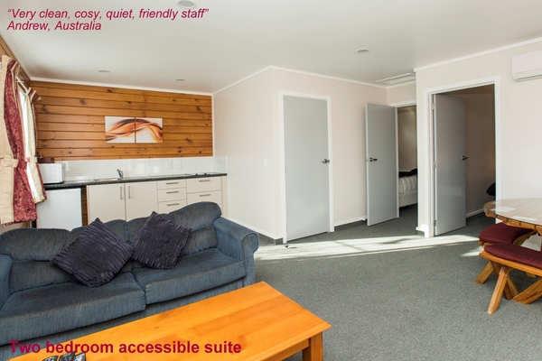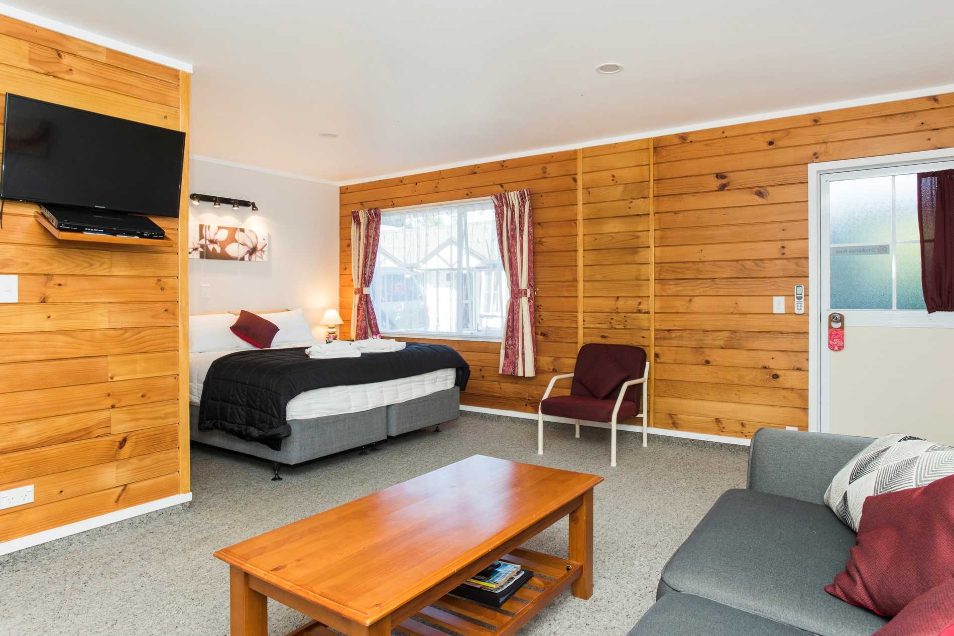 Our spacious ground-floor rooms offer the modern conveniences of home, with full kitchen facilities, heat-pump air-conditioning, smart TVs, free WiFi and parking right outside each unit. The motel is located off the main road, creating a quieter sanctuary away from the busier city areas.